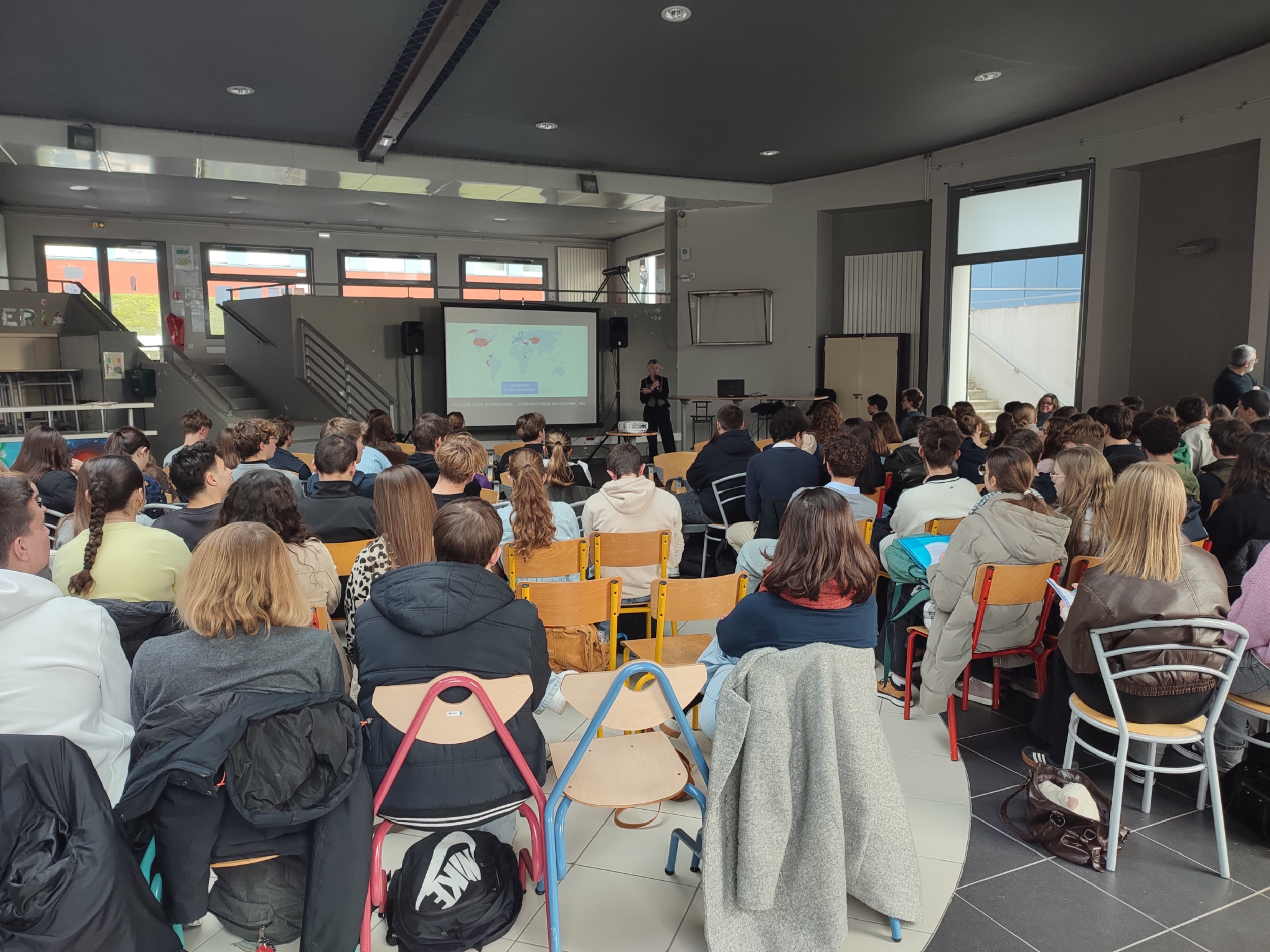 Face aux élèves de Terminales, celle qui est encore à ce jour la première femme vice-amirale de la Marine Nationale, a donné une conférence sur les enjeux actuels des mers et océans. Evoquant à la fois les enjeux en mer de Chine, les menaces liées à la Russie ou encore l’importance des détroits et canaux, elle a également pu répondre aux questions des élèves portant notamment sur les menaces actuelles ou sur l’ouverture de nouvelles routes.